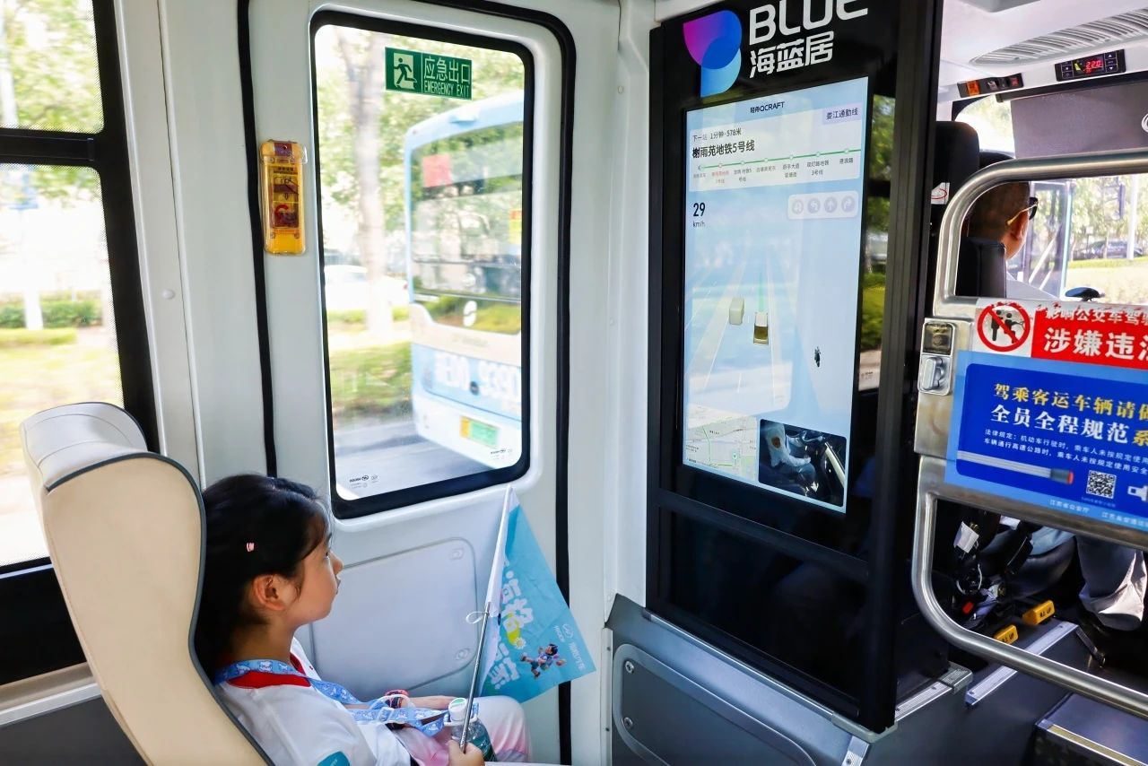 最让孩子们兴奋的环节,莫过于亲身乘坐体验苏州金龙的L4级自动驾驶小巴。在工作人员的引导下,他们秩序井然、有序上车,按要求系好安全带,亲身体验自动驾驶技术带来的奇妙感受。每辆智能网联小巴车均配备一名专职安全员全程为大家保驾护航。小朋友们在乘坐过程中观察了行驶过程中减速、绕行等智能自动驾驶操作。孩子们好奇地观察车内的智能设备,不时发出阵阵惊叹。