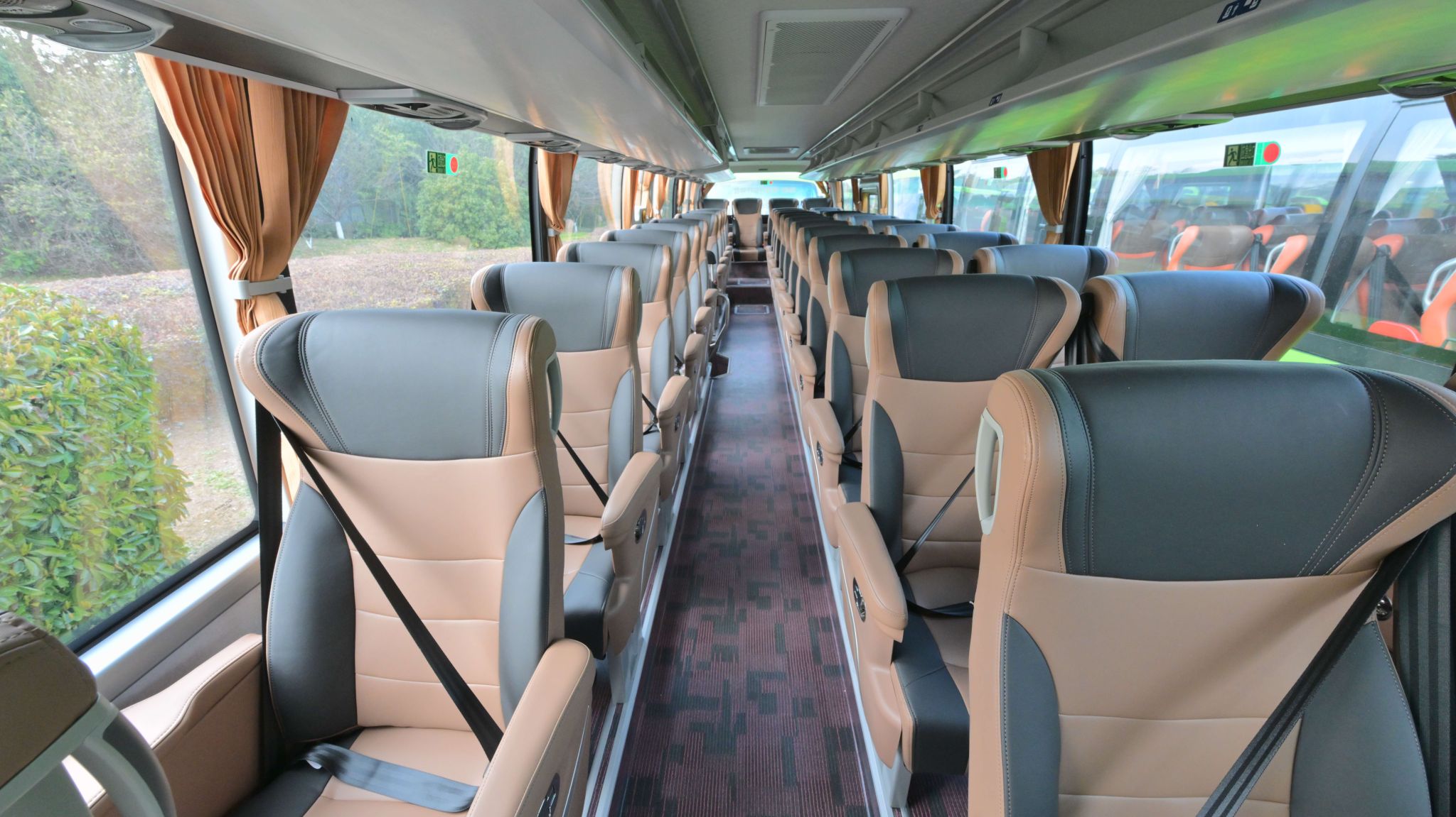 这批海格新V系新车型不仅实现轻量化节能设计,还配备智能座舱系统,支持语音交互、多屏联动,车内温度清新适宜,并配备便捷USB充电口——以往常见于高铁的舒适体验,如今被“搬”进了旅游大巴。尤其值得一提的是,车厢座椅间距较传统车型扩大30%,尾排可灵活调节,即便长途旅行也不再感到局促。