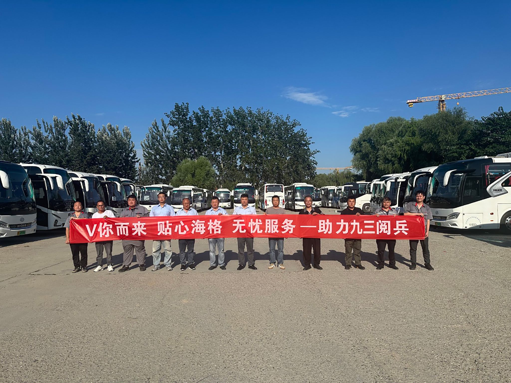 9月3日凌晨2点左右,超260台海格客车组成的九三阅兵转运车队从北京各个区域先后驶进阅兵指挥部指定的乘客集散点,顺利完成了护送参演人员和观众的任务。