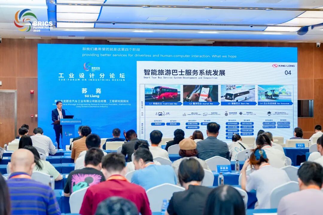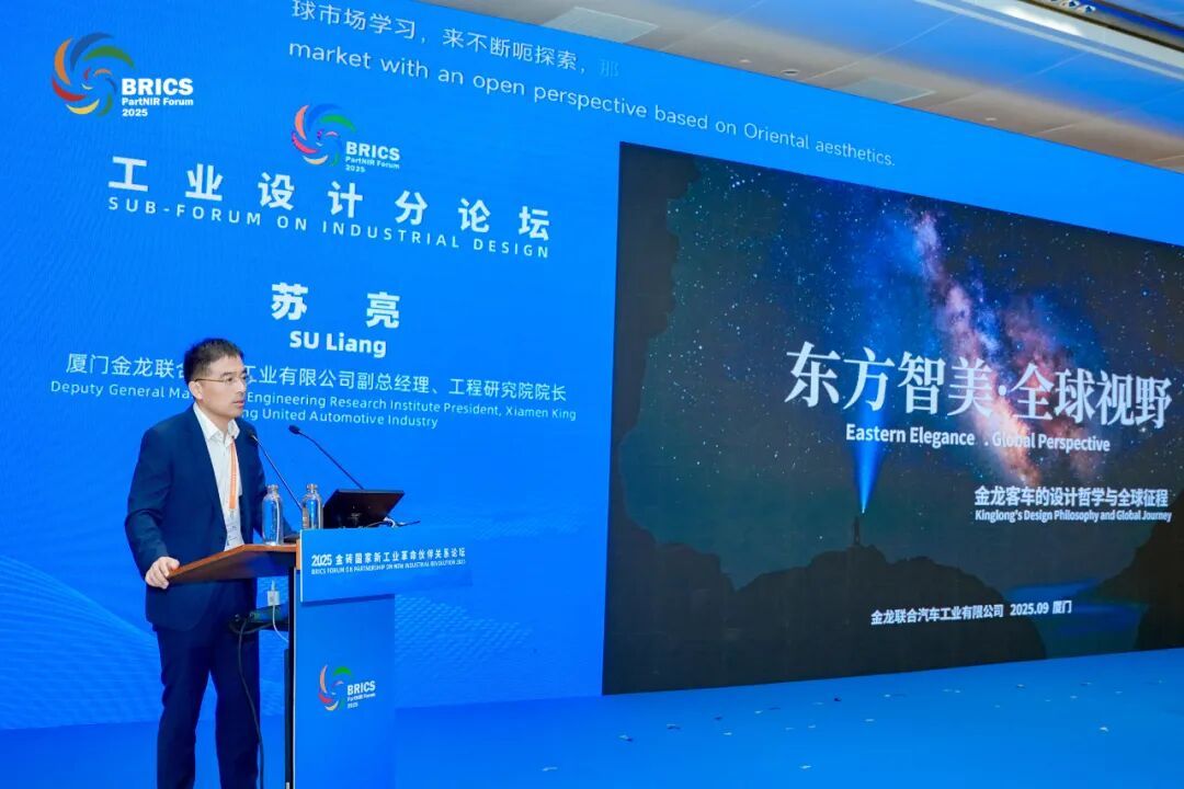 金龙副总经理、工程研究院院长苏亮向参会嘉宾分享金龙客车的设计哲学与全球征程。他说,金龙在开展海外业务过程中,依托产品与服务,满足不同地区用户的出行需要。“未来,金龙将持续探索车辆智能技术与人文设计的有机结合,为更高效、更友好的交通方式提供支持。”