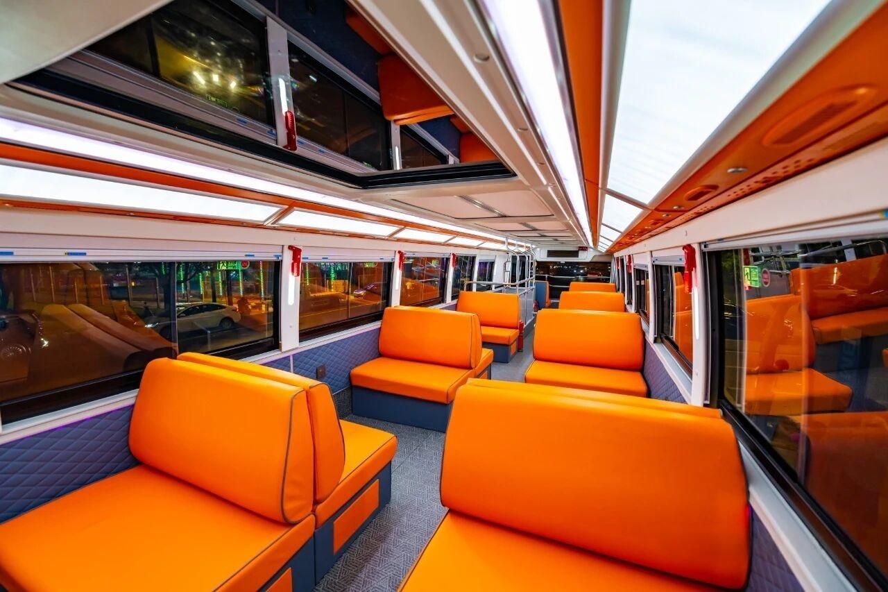 目前,苏州金龙双层巴士已先后在天津、重庆、昆明等多个旅游热门城市投入运营,同款车型已出口至俄罗斯、冰岛、黎巴嫩等国家和地区。车辆内部还可以配备饮水机、冰箱、吧台等,量身定制满足客户的个性化需求。随着双层巴士在全国各地的逐渐推广,“坐车赏景”两不误的方式也将成为越来越多游客的旅游新体验。苏州金龙也将始终以客户和乘客为中心,助力中国旅游客运行业创新前行、蓬勃发展,让人们的出行生活更舒适,更便捷,更美好!