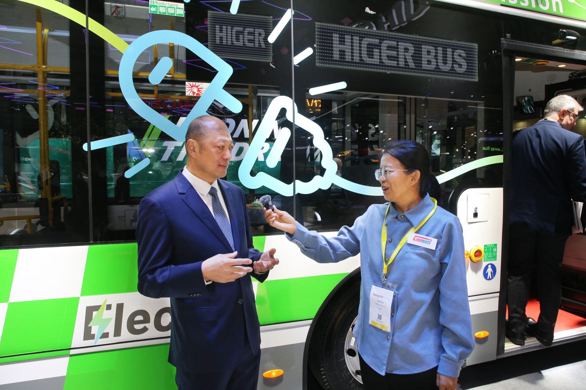 苏州金龙海外销售总经理姜海峰(左)接受行业媒体专访