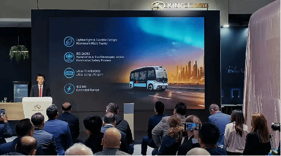 展会伊始,金龙展台人潮涌动、气氛热烈,吸引了众多海内外主流媒体与专业观众的关注。侯晨磊董事长表示:“金龙已完成全产品矩阵升级,涵盖七大产品系列及一个配套产业集群,旨在为全球客户提供更具竞争力的解决方案。”这一产品阵容,既是金龙二十载欧洲耕耘的成果体现,也彰显了金龙在技术领域的持续突破与对欧洲市场的深刻洞察。作为此次升级成果的集中展示,全方位展现了金龙的创新实力与技术前瞻性。