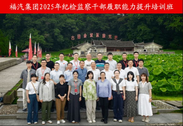 为深入学习贯彻二十届中央纪委四次全会和省纪委十一届五次全会精神,落实“纪检监察工作规范化法治化正规化建设年”行动要求,进一步提升集团纪检监察干部综合履职能力,2025年7月7日-11日,福汽集团纪检组(监察专员办)与省电子信息集团纪委(监察专员办)、省船舶工业集团纪委(监察专员办)在福建古田干部学院联合举办2025年纪检监察干部履职能力提升培训班,集团系统28名纪检监察干部参加培训。