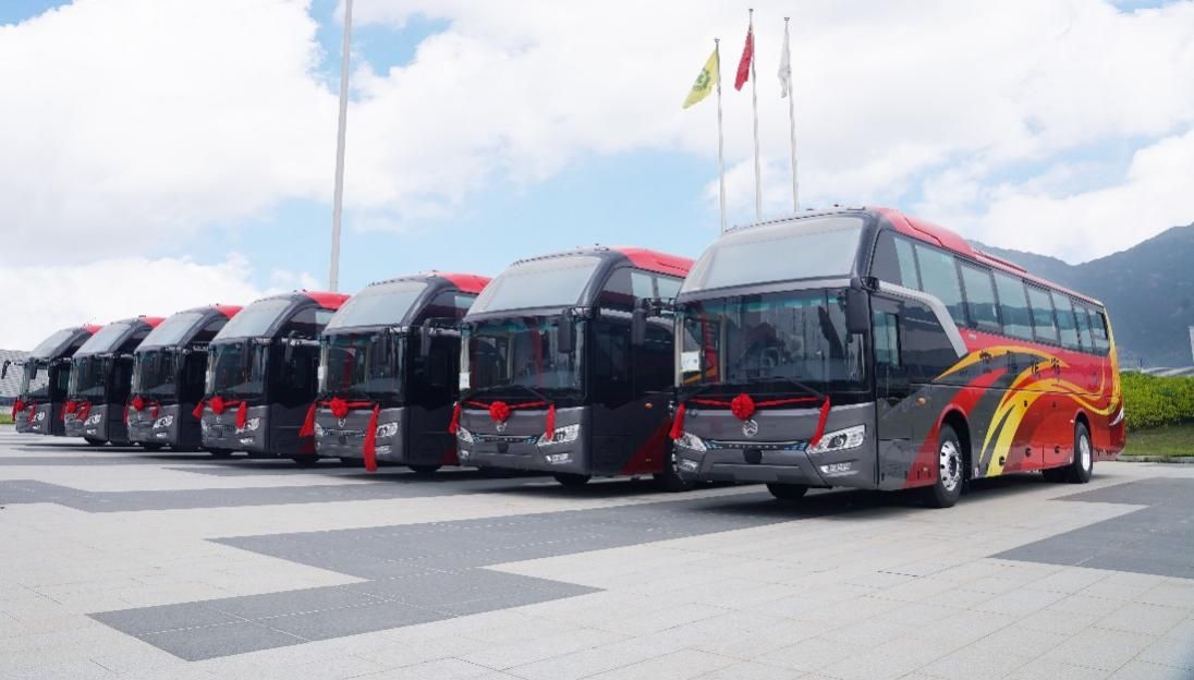 2025 年 5 月 20 日,7 辆12米的金旅凯歌豪华客车正式交付包头市世腾旅游客运有限责任公司(以下简称 “世腾旅游”)。作为包头旅游客运市场首个 “2+1” 商务座椅客车的批量采购订单,此次交付标志着当地旅游客运市场向高端化、品质化迈出关键一步。凭借卓越的舒适性、安全性与智能化配置,金旅凯歌为旅游市场提供了品质出行的标杆解决方案。