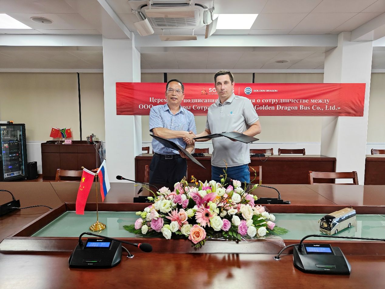 SOTRANS作为金旅客车在俄罗斯的独家经销商,一直以来不仅为俄罗斯市场提供客车,还积极提供售后保修服务。其在俄罗斯不同地区拥有7个服务中心以及备件批发仓库,为金旅客车在俄罗斯的稳定运营提供了有力保障。此前,SOTRANS已多次向圣彼得堡国有联合企业Passazhaziravtotrans交付批量客车,获得了当地市场的认可。在签约仪式上,金旅客车副总经理江永辉表示:“我们非常重视与SOTRANS的合作,此次签订经销协议,是双方基于长期互信和共同发展目标的重要举措。未来,我们将继续为俄罗斯市场提供高品质、多样化的客车产品,并与SOTRANS紧密合作,不断提升产品的市场占有率和品牌影响力,为俄罗斯的公共交通事业发展贡献力量。”